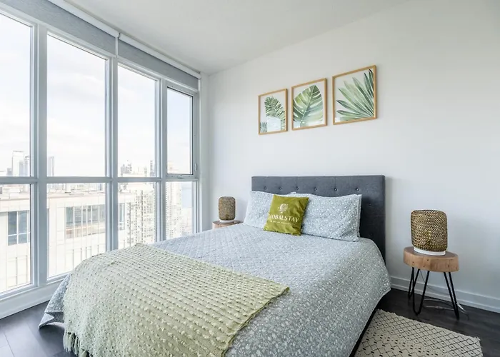 El 48Th Floor Cn Tower And Lake Ontario View 1 Bedroom Plus Den Condo Iceboat Terrace Downtown Toronto, situado a 750 metros del Estadio Rogers Centre y el Sobeys Urban Fresh Spadina, ofrece vistas a la ciudad. Los huéspedes tienen acceso a Wi-Fi.